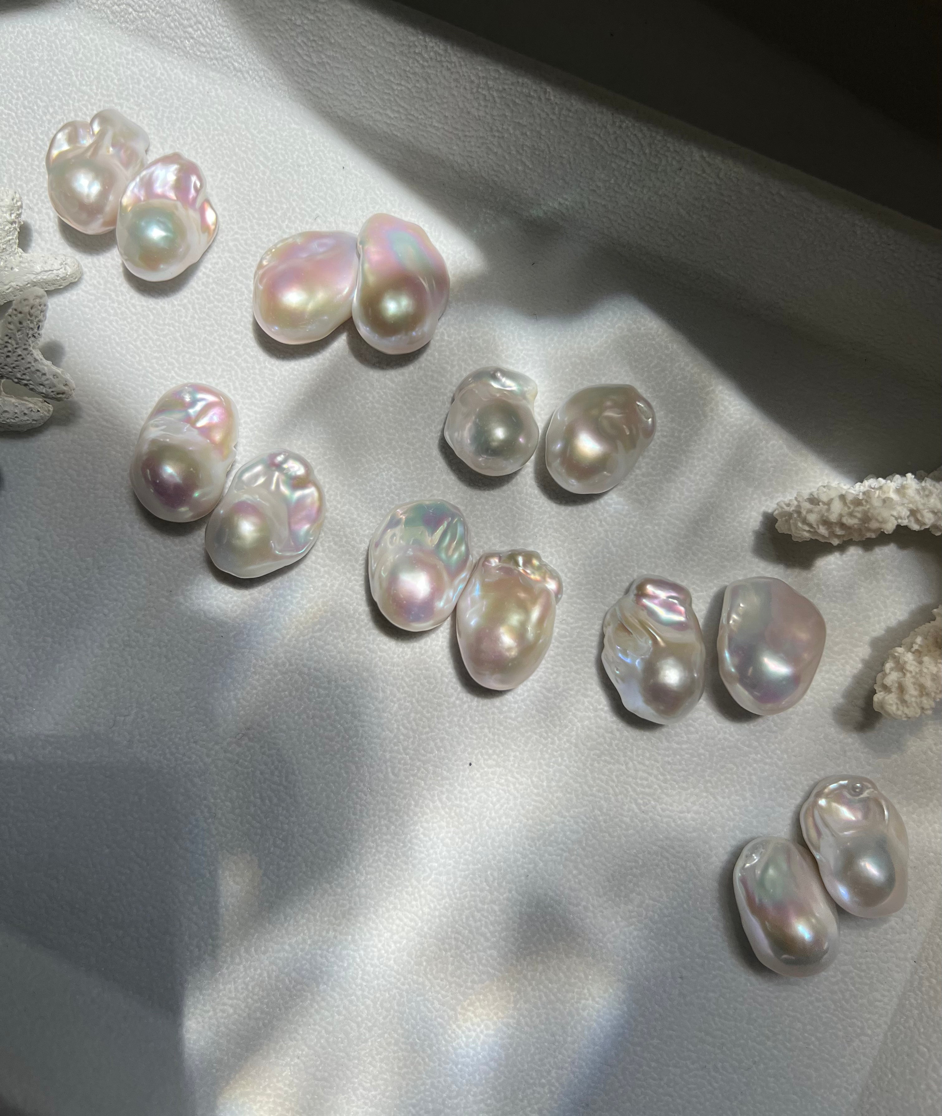 真珠の表面に施されたコーティングの量によって真珠の特徴が決まり、コーティングの厚さは貝が海に浸かっていた時間によって決まります。真珠のコーティングが厚いほど光沢(ツヤ)があり、色も濃く美しくなります。この光沢と色の深さが高品質真珠の特徴で、魅惑的な表情を作り出します